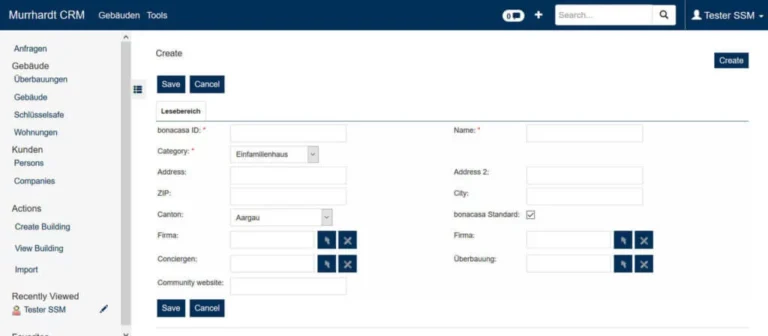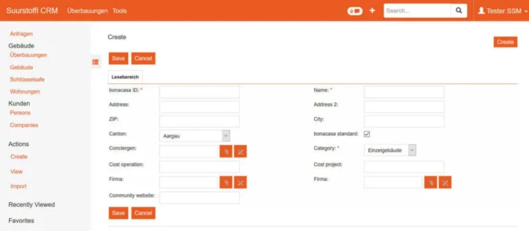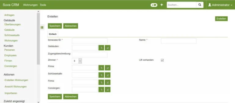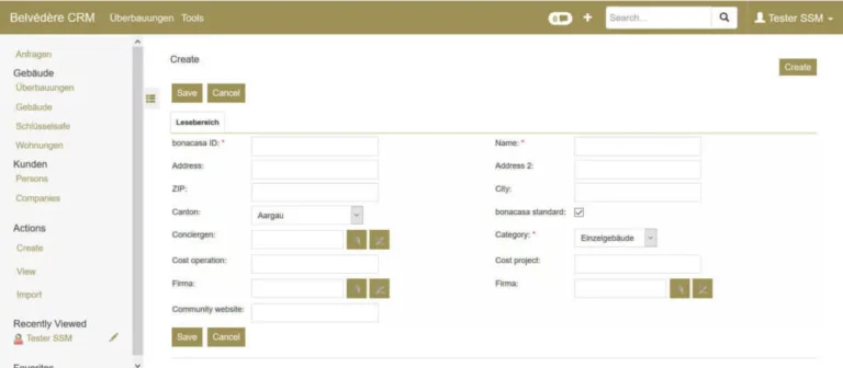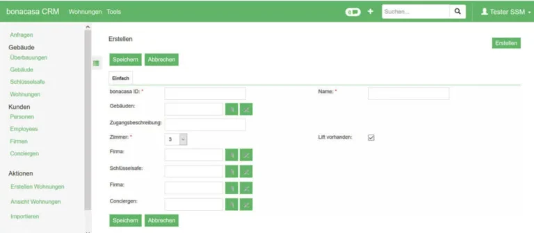 Über das CRM kann die Überbauung, Gebäude, die dazugehörigen Wohungen, sowie deren Bewohner erfasst und administriert werden. Des Weiteren, können die zuständigen bonaConcierge, welche für die jeweiligen Bewohner zuständig sind, direkt zugeteilt werden.