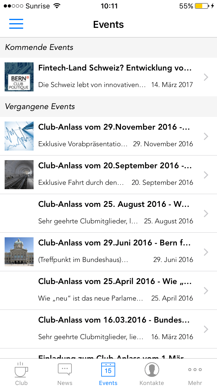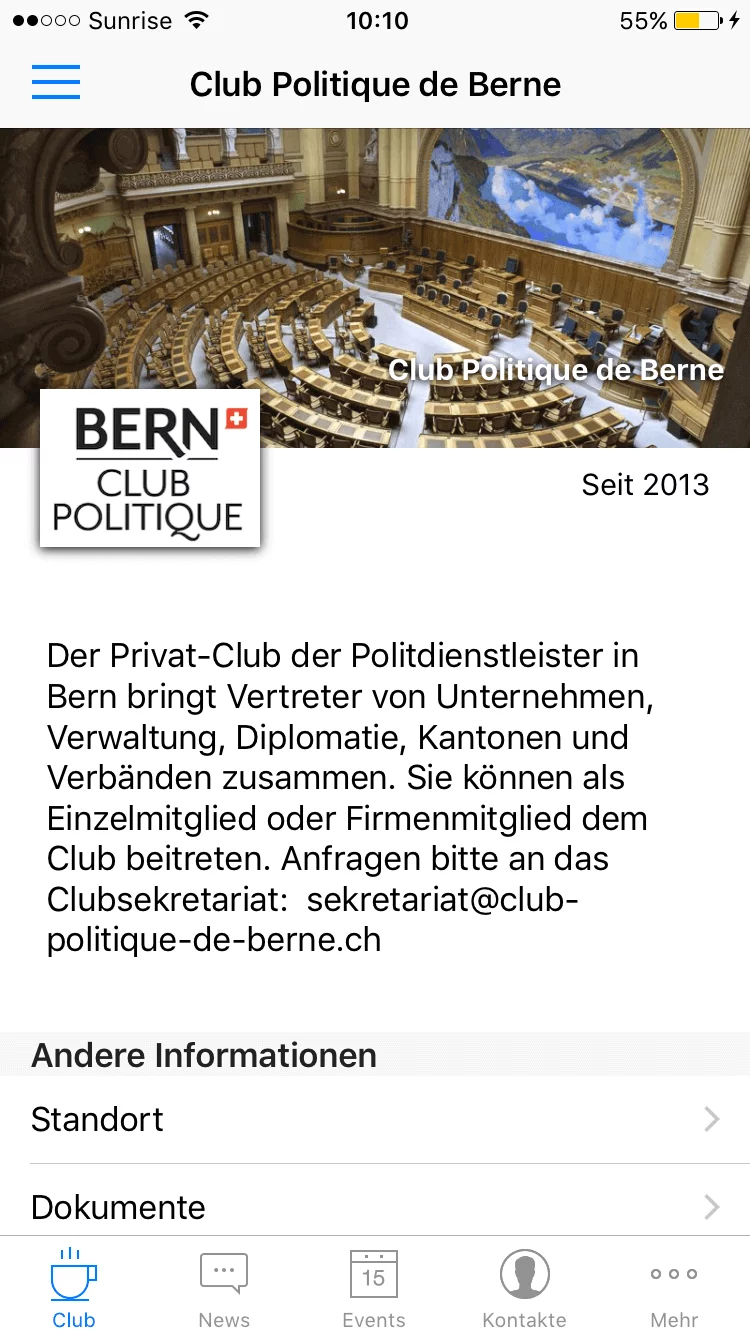 Erstkunde ist der Club Politique de Berne, welcher neu seine gesamte Mitglieder-Administration über die Clubs-App abwickelt. Über 150 Mitglieder aus Politik und Wirtschaft erhalten so über die Clubs-App Informationen zu Veranstaltungen und bleiben dank des Mitgliederverzeichnisses stets in Kontakt.