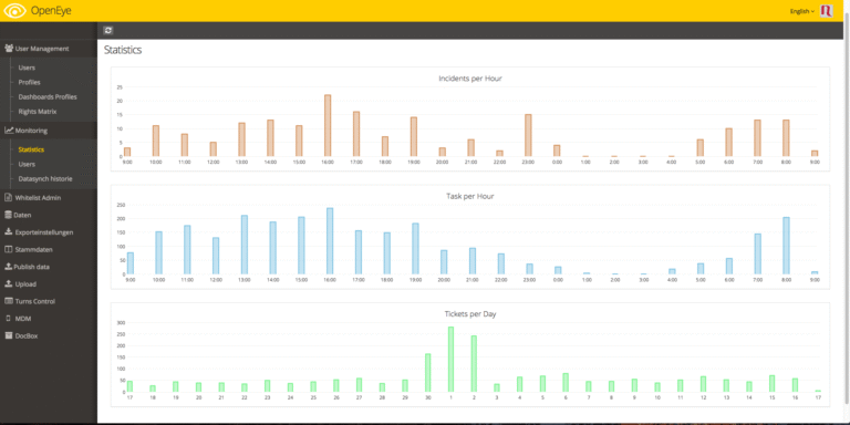 OpenEye erlaubt es dem Kontrollpersonal zusätzlich, Arbeitsrapporte direkt online zu erfassen und besitzt ein Dispositionstool, welches eine ergebnisorientierte Planung der Kontrolleinsätze auf Basis aktueller Marktdaten erlaubt.