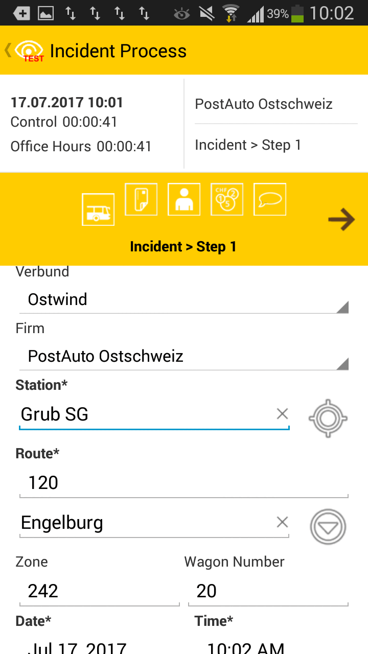 • Erfassung der Kunden- und Vorfalldaten mit verzeichnisbasierten Eingabehilfen während der Ticketkontrolle