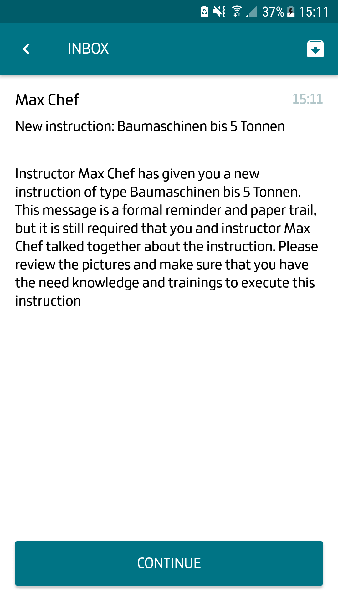 Das System (App und Webbackend) stellt sicher, dass die Bauarbeiter auch die entsprechende nötige Ausbildung an den jeweiligen Maschinen/Werkzeugen besitzen, bevor sie mit der Arbeit beginnen. Instruktionen werden dokumentiert/archiviert und können bei Versicherungs- und Rechtsfällen als Beweismittel beigezogen werden.
